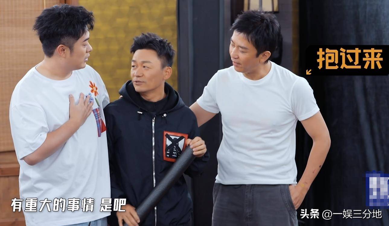 如果说拥抱还不足以证明感情深厚,那接下来,陈赫和王宝强之间的互动也太有趣了,陈赫不仅搂住王宝强,还故意挑拨他和邓超的关系。邓超不在意,反倒在一旁跟王宝强互动得更亲密。