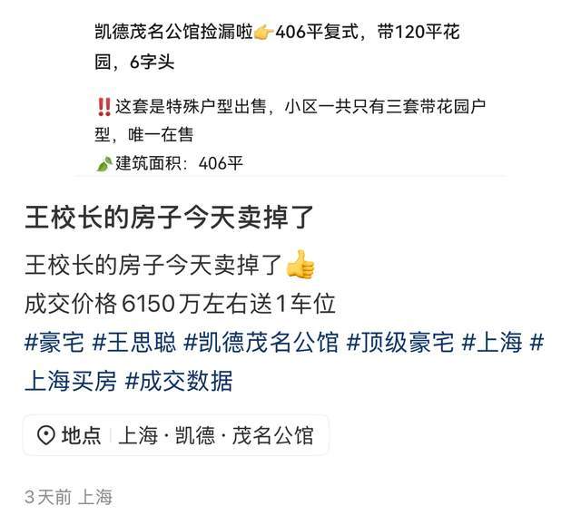 早前,曾有网友发文称,王思聪位于上海的豪宅已经以6150万的价格成交,根据之前购买的价格以及装修的花费(光装修就花费了差不多2000多w)等等,结合当下的市场环境,这套豪宅应该是亏本的。