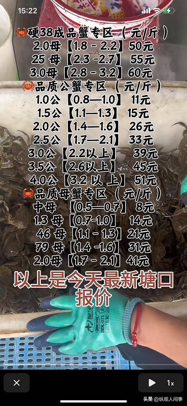 最后,有宿迁本地人放出了近日螃蟹价格,最贵的母蟹价格也不过在60左右,这还是散户去市场买的市场价。