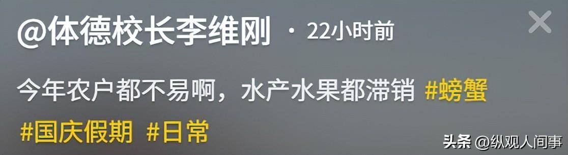 近日,刚从新疆旅游散心回来,重新对生活燃起信心的李维刚,从后台接到了一个蟹塘塘主的“求助”,说自己塘里的螃蟹已经成熟,个个肥美却不好出手,生活艰难。