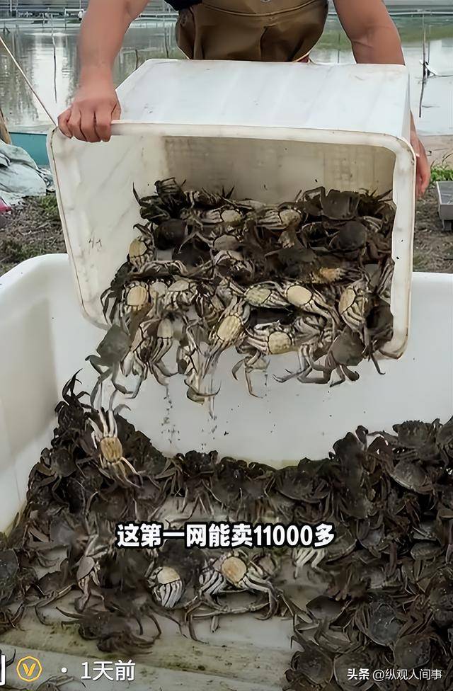 “阳澄湖大闸蟹都不敢说1斤100元不论大小,但是李维刚却遇到了。”