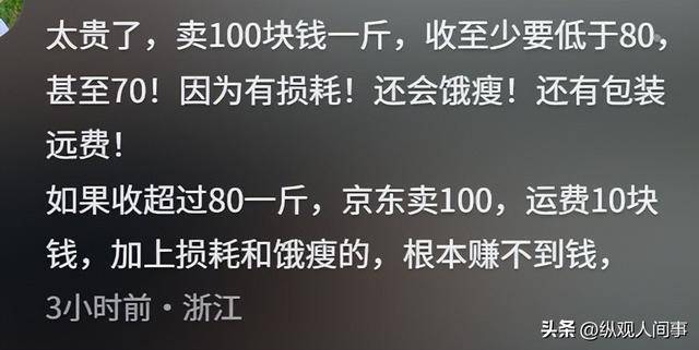 “京东就算按80一斤收都可能不挣钱,你怎么敢100块一斤从农户手里直接收的。”