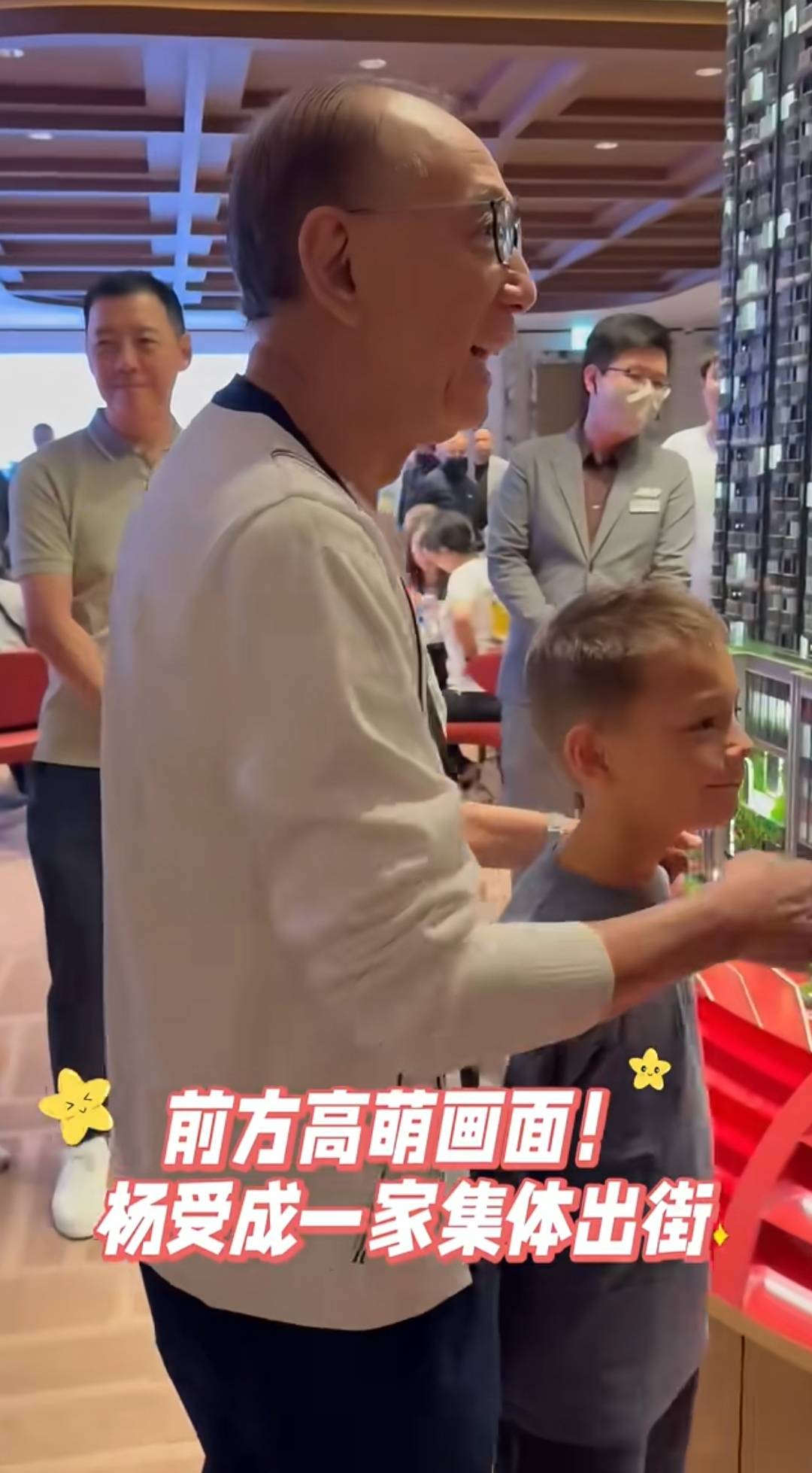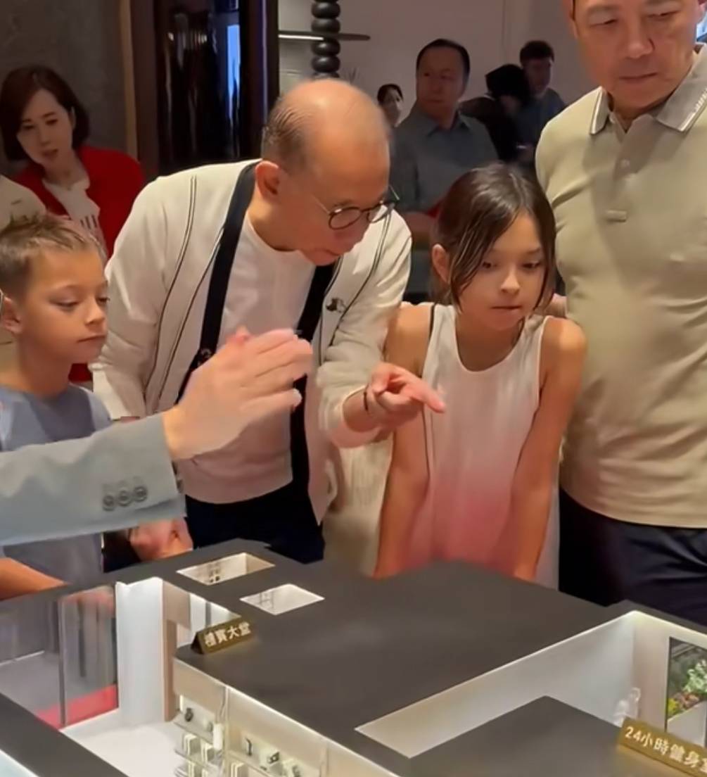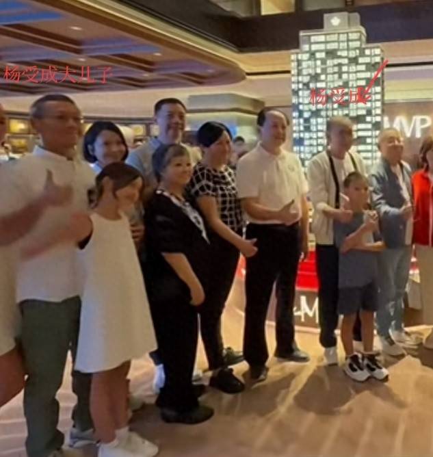 曾是杨受成颇为头疼的儿子,如今父子关系明显缓和许多。此次带大儿子一家看房,尤以陪伴混血孙辈为主,推测可能是为孩子们购置新居。杨受成拉着孙子细致介绍楼盘,隔代亲情可见一斑。作为长孙,杨受成亦深感承欢膝下的珍贵,拍照时不忘挽着孙子,画面温馨动人。这对活泼可爱的孙儿孙女,自然赢得了在场所有人的喜爱。