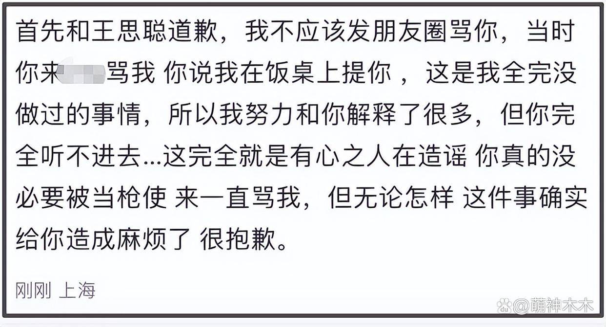 面对王思聪的辱骂,EL在个人社媒发布道歉声明,承认曾在朋友圈辱骂王思聪,但否认在饭局上提及他,坚称一切都是有心人造谣。她还表示王思聪骂她不过是被他人当枪使。对于外围女和灰产男的指控,她并未详述,只否认了“开价包养”和“一周20万”的传闻,称此次风波源于自己得罪了人,今后将更加谨慎。