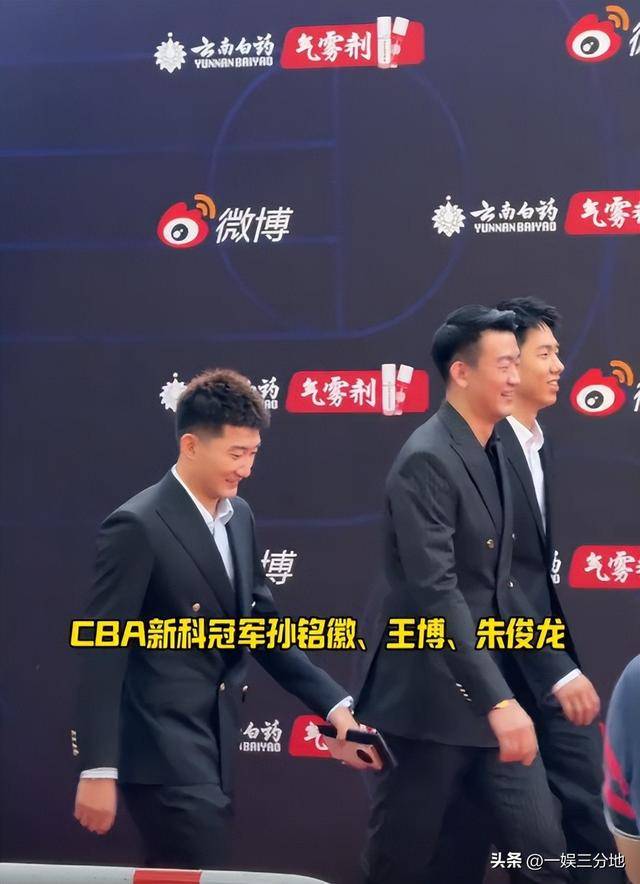 红毯开始,CBA新科总冠军孙铭徽、王博和朱俊龙结伴而行。