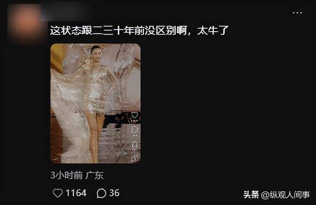 之前她走秀,头型都是盘头,盘刘海看着年纪都老了得有10岁。