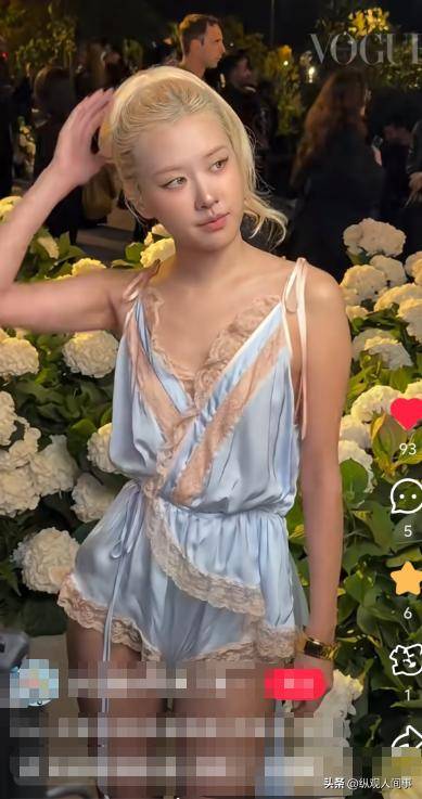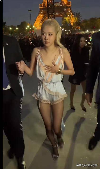 坐在车里看其实还好,毕竟属于私密空间,等到朴彩英走出保姆车被人群包裹的时候,她似乎突然意识到了自己的穿着问题,一只手死死捂在了胸口。