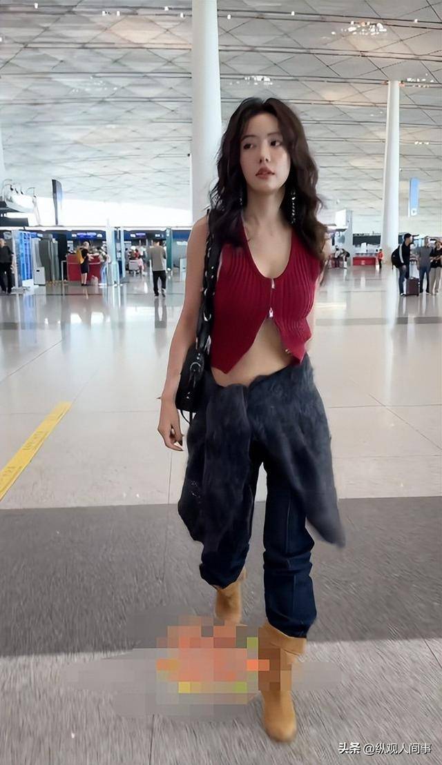 可能是北京的天气炎热,所以她只穿了一件针织马甲就出来了。