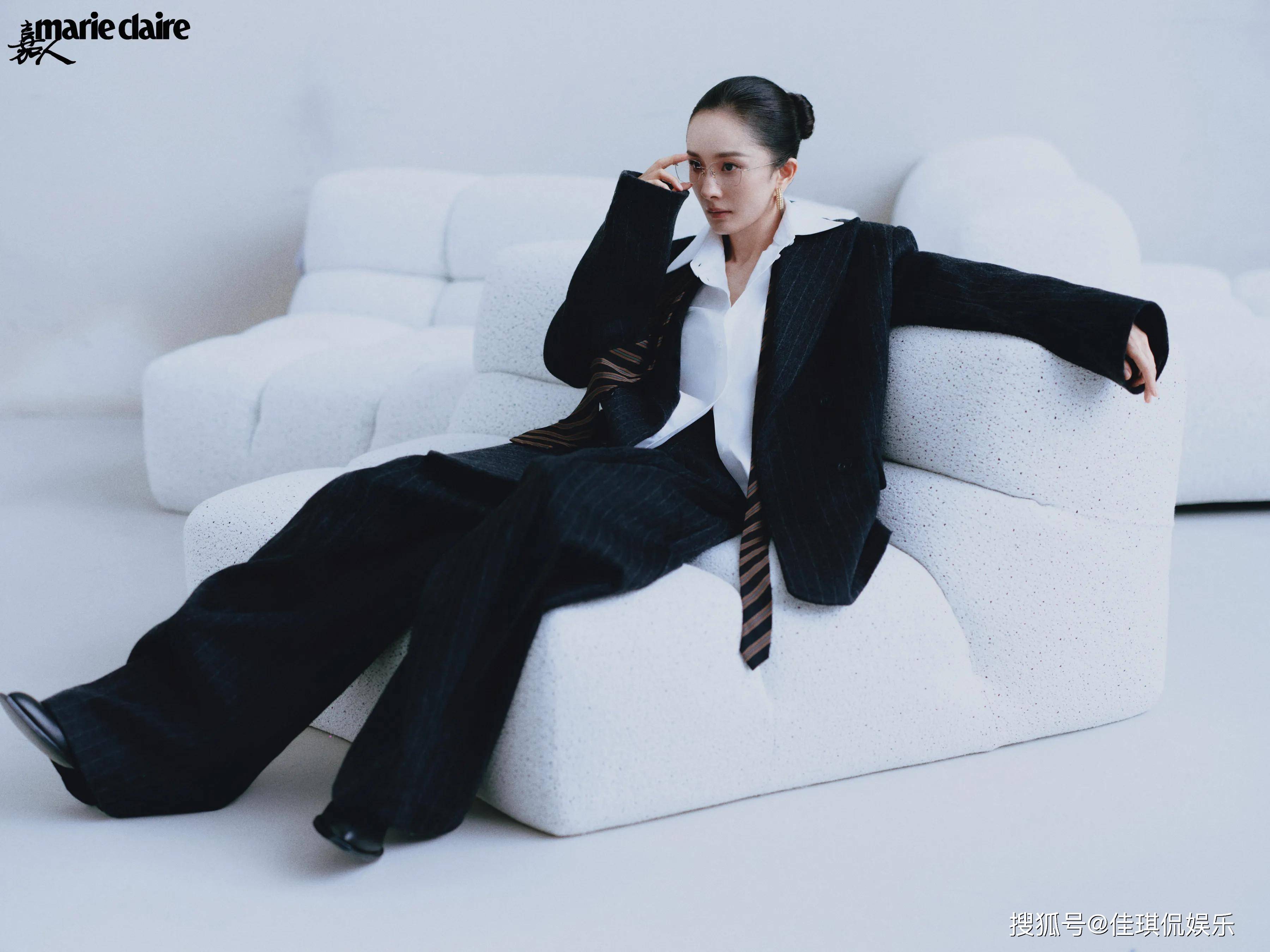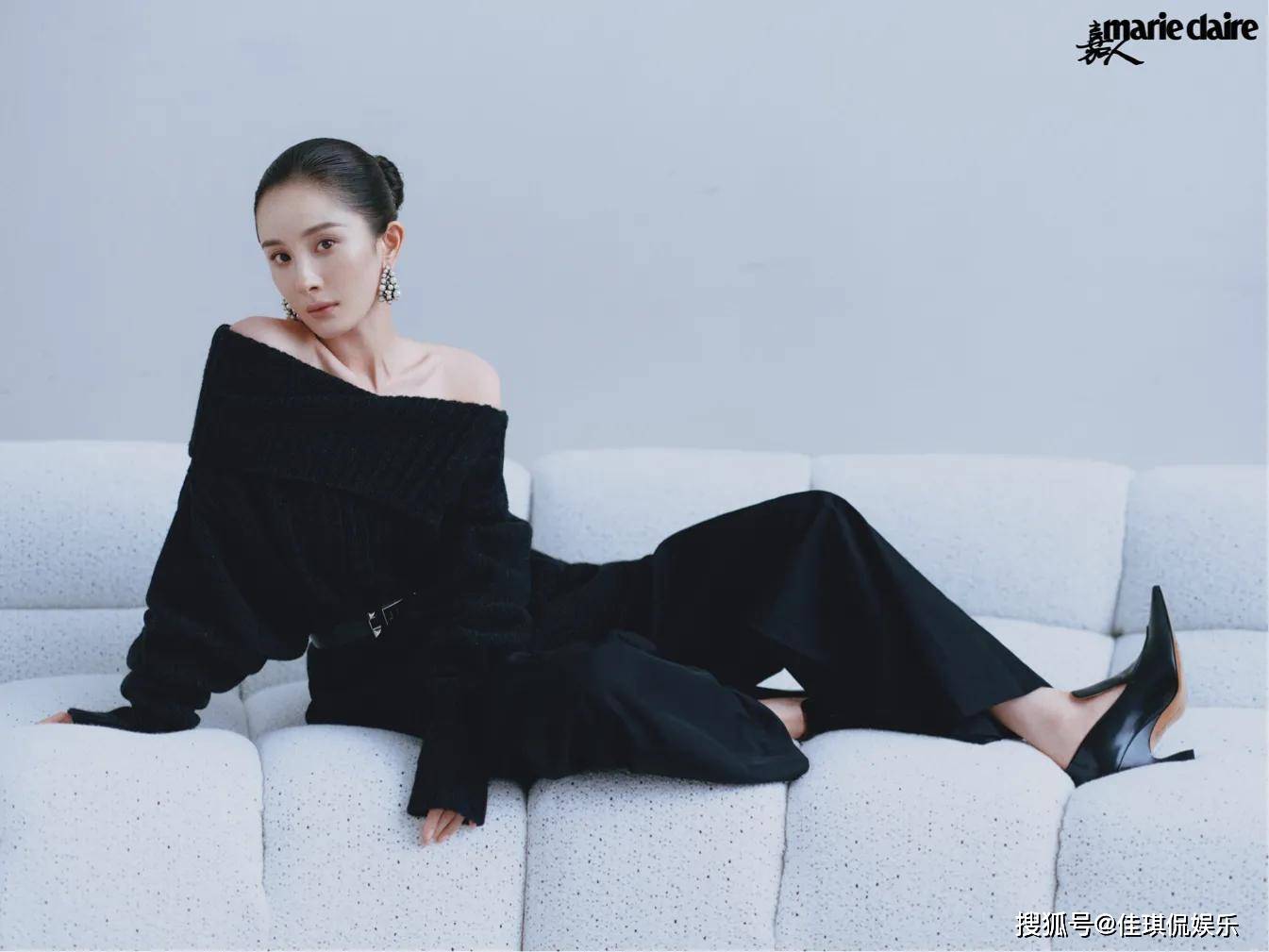 杨幂这次的杂志大片里,让人印象最深的是这件斜肩大毛衣造型。她梳着盘发躺在白色沙发上,身材修长纤细,整个人慵懒又魅惑,她身上有早起张曼玉的气质。杨幂是百变的,她是时髦的精致的。
