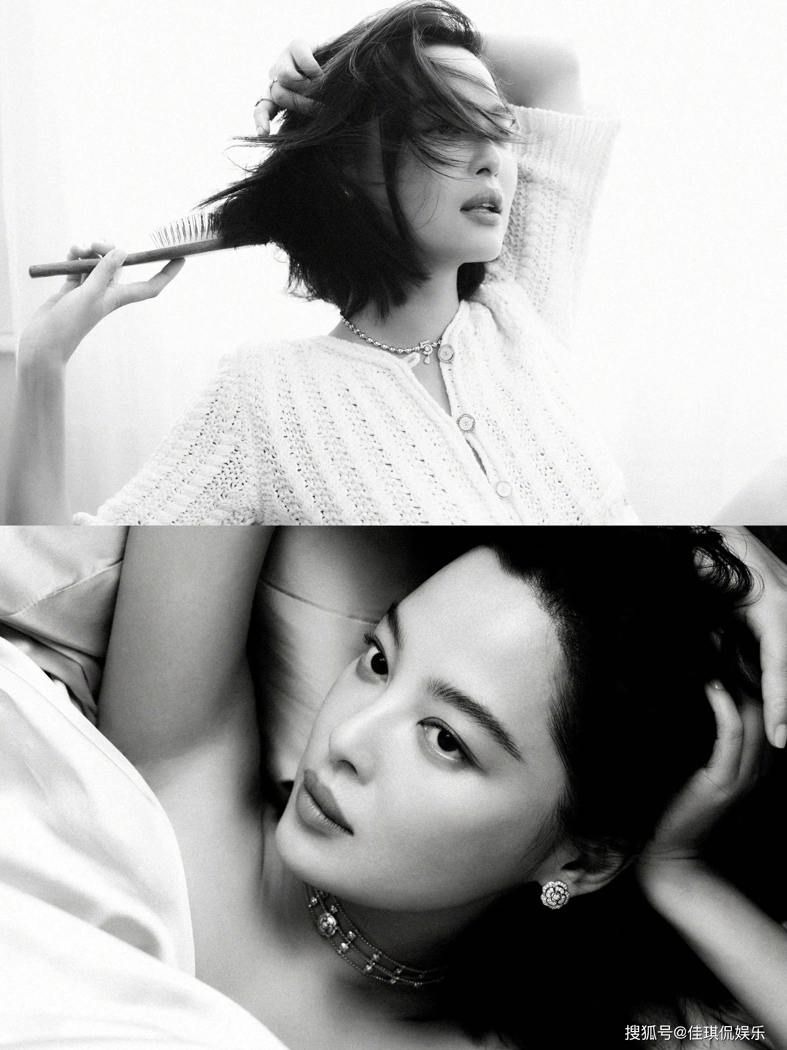 很喜欢辛芷蕾穿着白色香奈儿套装拍的这组黑白大片,她身上有法式浪漫,优雅的毫不费力。