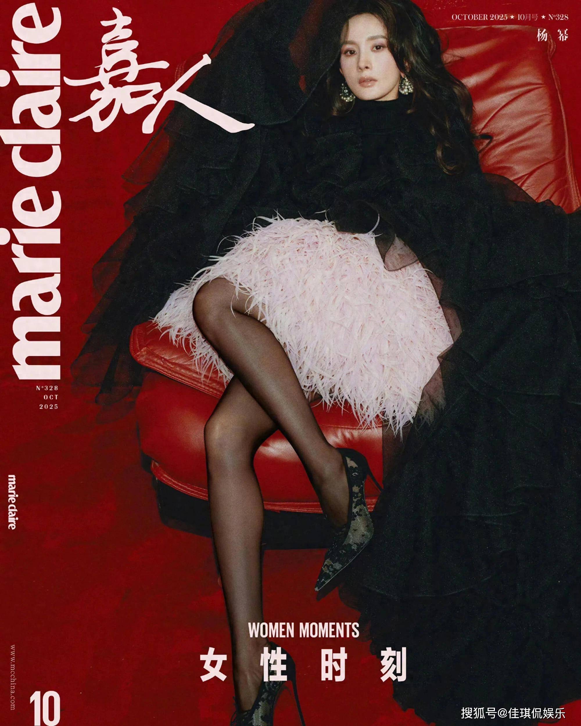 杨幂这次拍了两张十月刊封面,其中一张,她身穿粉色羽毛裙慵懒的躺在红色皮沙发里,脚上穿了一双大理石纹尖头高跟鞋,这个姿势很魅惑,杨幂身上的狐狸劲儿太迷人了。