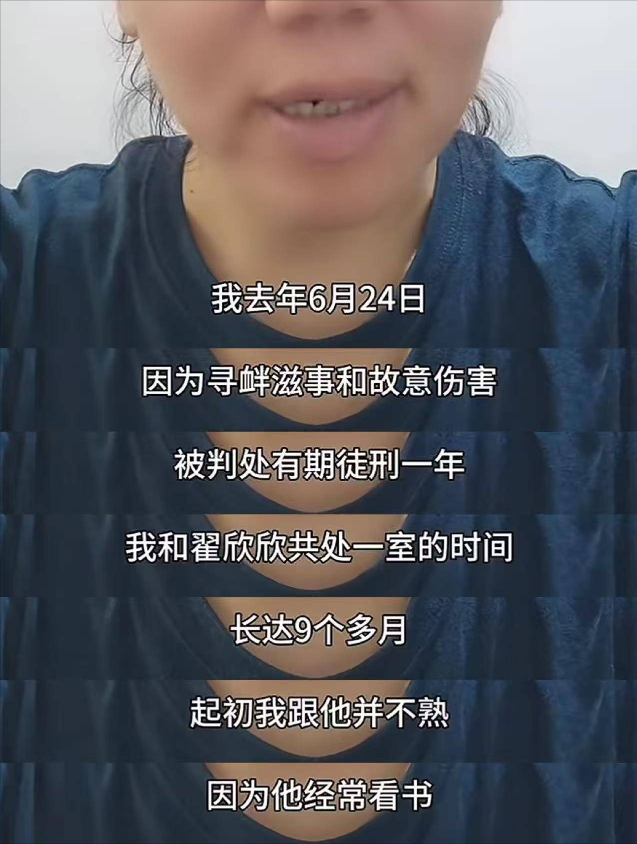 她因为寻衅滋事被关进监狱,刚好和翟欣欣在一个牢房。