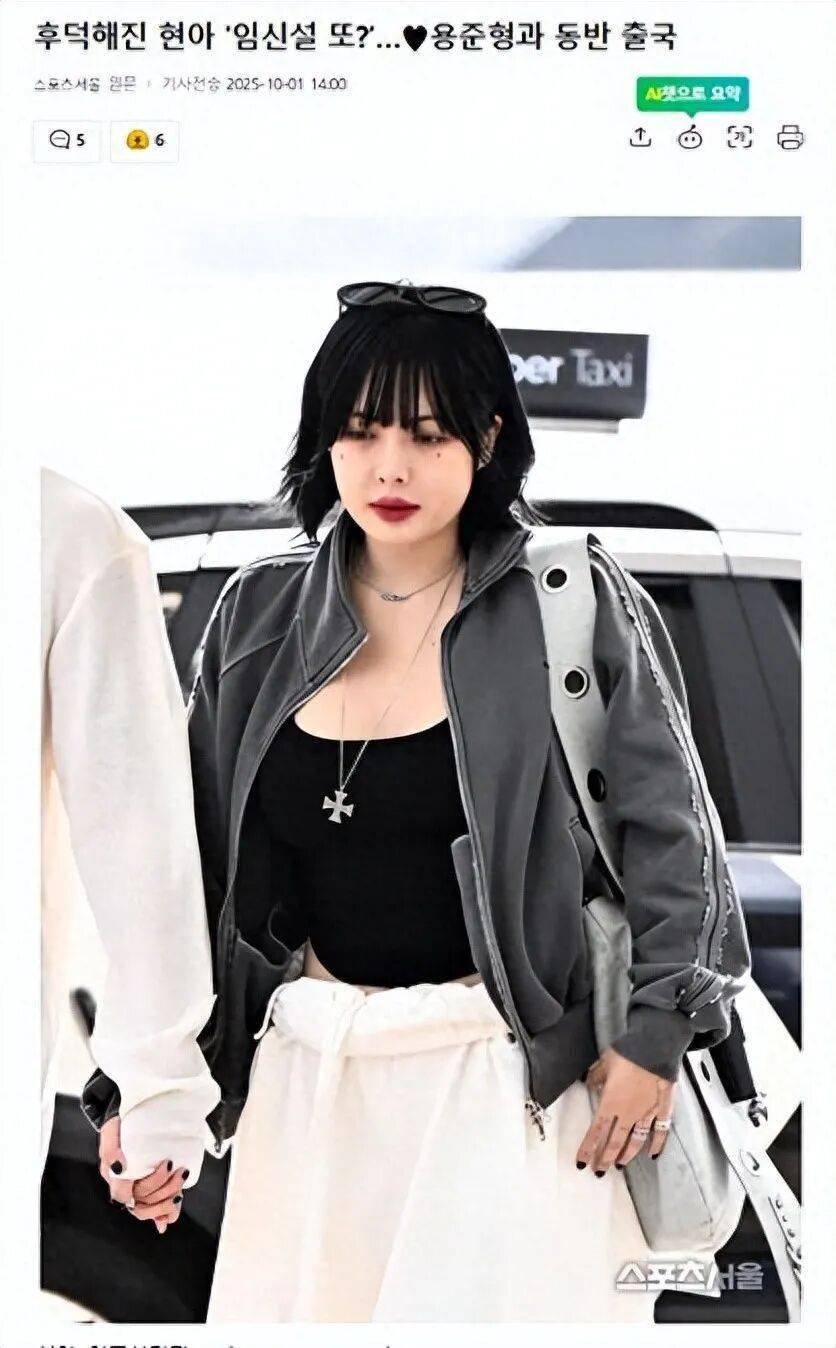歌手泫雅又因身材话题被推上风口浪尖。据韩国媒体10月1日报道,泫雅与男友龙俊亨现身仁川国际机场,准备飞往新加坡参加音乐节行程。然而,比起两人的行程,大众的目光却聚焦在泫雅略显丰腴的体型上,甚至直接引爆了新一轮“怀孕猜测”。