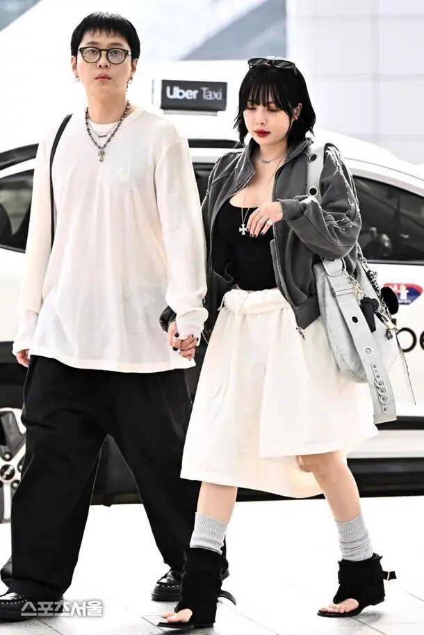 而同行的龙俊亨则延续了默契的情侣风格,身穿白色长袖T恤与黑色宽松长裤,搭配眼镜和银色饰品,低调中透出知性气质。两人全程并肩而行,互动自然,似乎并未受到外界猜测的影响。