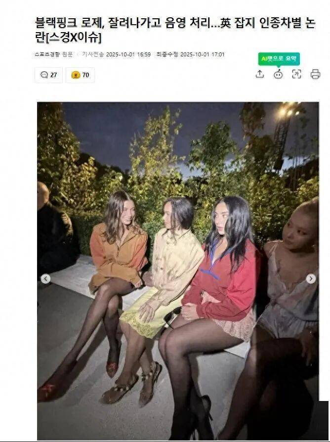 从照片裁剪到画面调暗,这些看似“技术性”的操作,实则是文化话语权的微观战场。当ROSÉ这样的顶级K-pop明星仍遭遇如此对待,更折射出亚裔面孔在全球化舞台上面临的“可见性困境”。这场风波早已超越粉圈争论,成为检验文化平等意识的试金石——在多元口号响彻时尚圈的今天,谁还在搞选择性眼盲?
