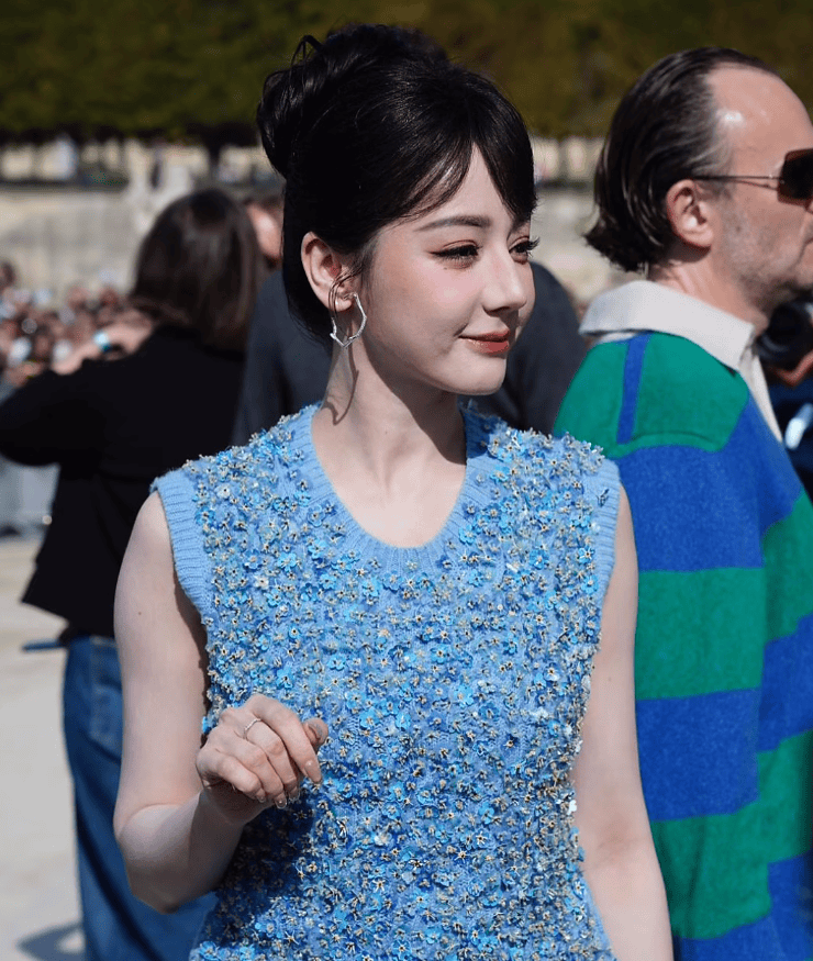 而且品牌的海外官网直到热巴现身秀场,也没有发布热巴的相关物料。只在品牌微博让热巴预热了一下自己要现身秀场,反倒在官网发布了韩星金智秀的物料。同是全球品牌大使的title,怎么还区别对待呢?内场看秀位置似乎也并不是顶级待遇。