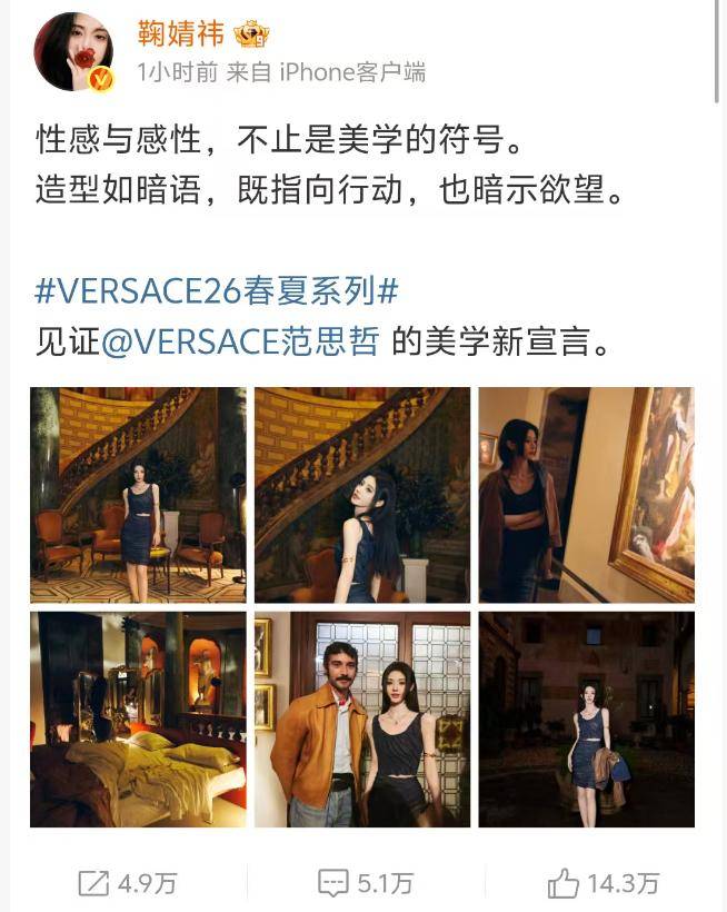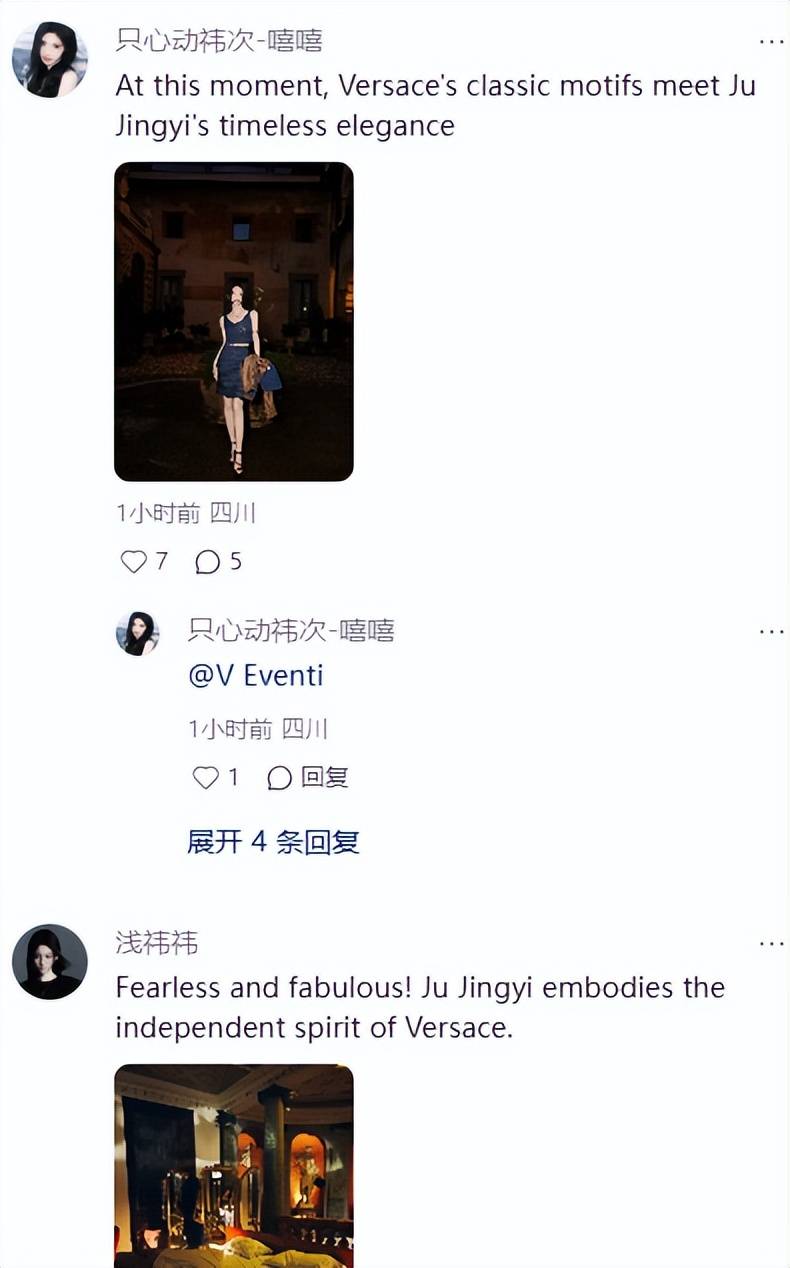 范思哲在中国社交网站的官方号也放了她这张搂腰照合影,还直接用来当封面图,下面全是粉丝用英文花式夸。