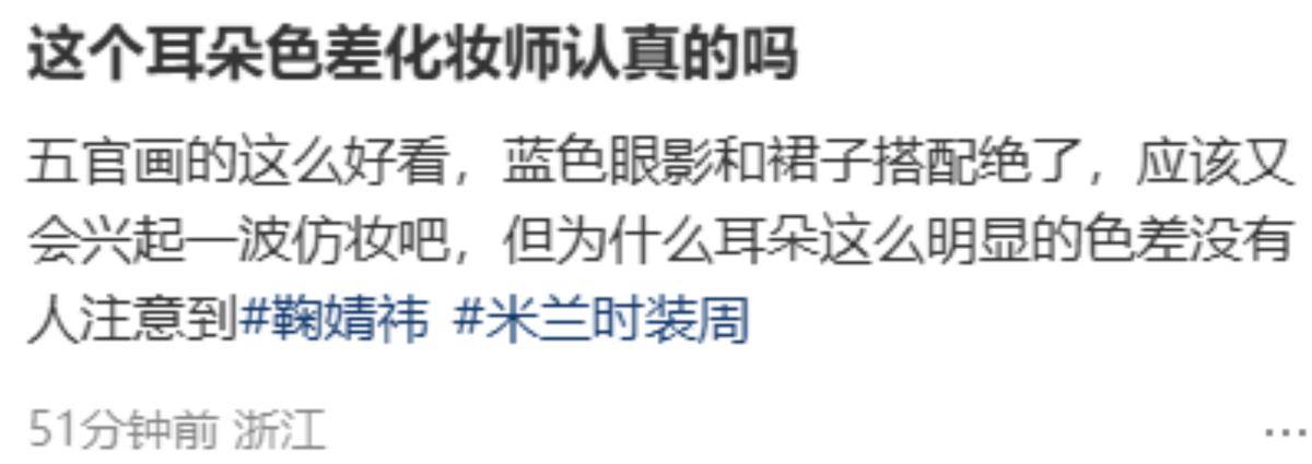 冷白皮也是粉底液硬化出的效果,从耳朵的肤色就能看出她的真实肤色。
