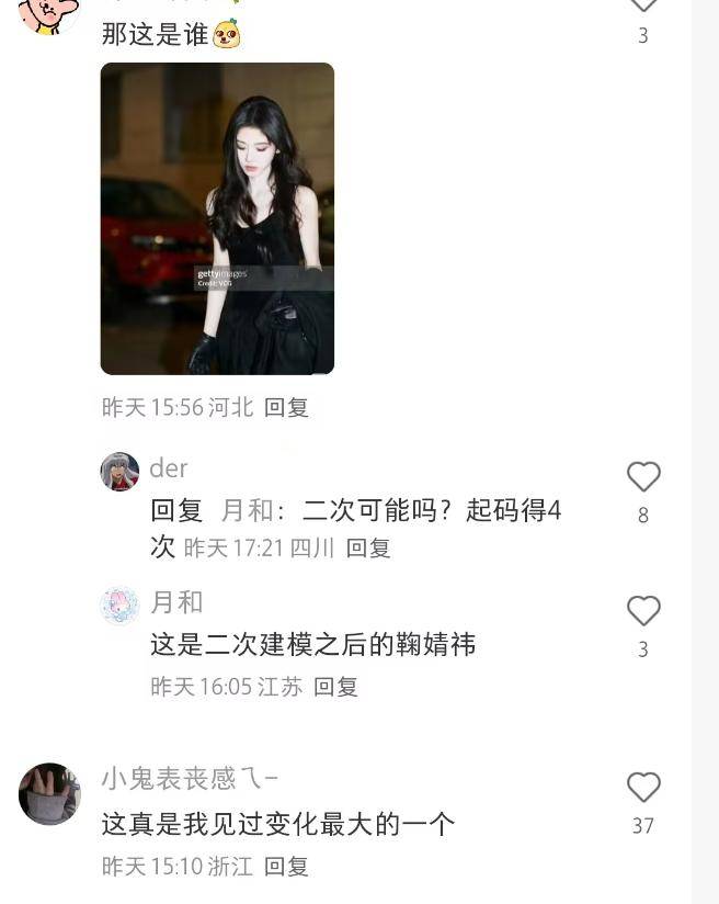 她的身高也依然存疑,网传的“生图”里面,她的身材比例已经没什么好挑剔的了。