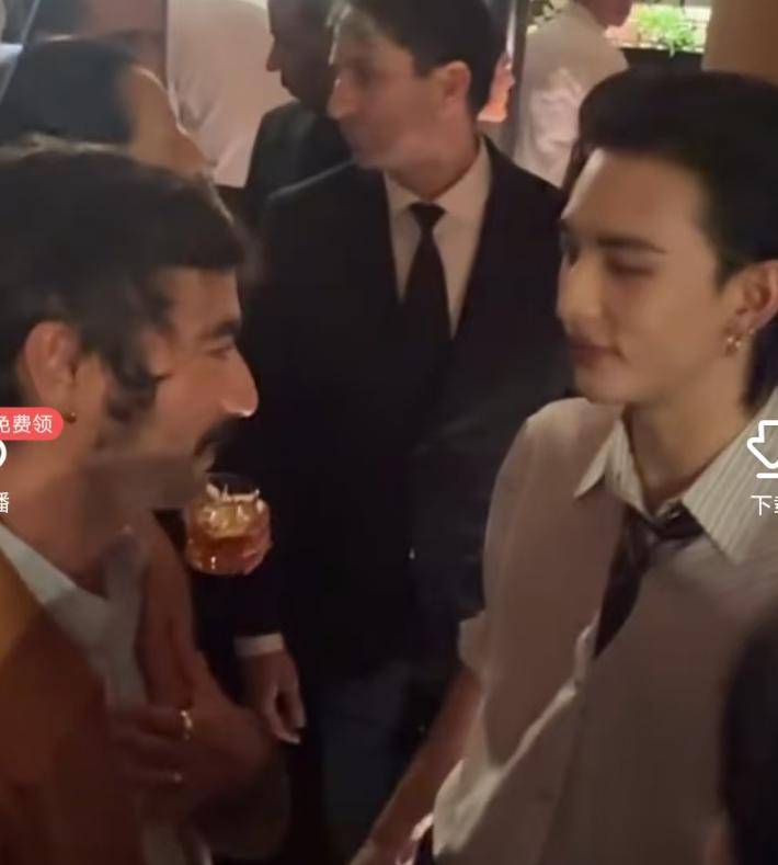 再看达里奥和同场另一位男星的互动,虽然也很热情,但就没有直接上手。