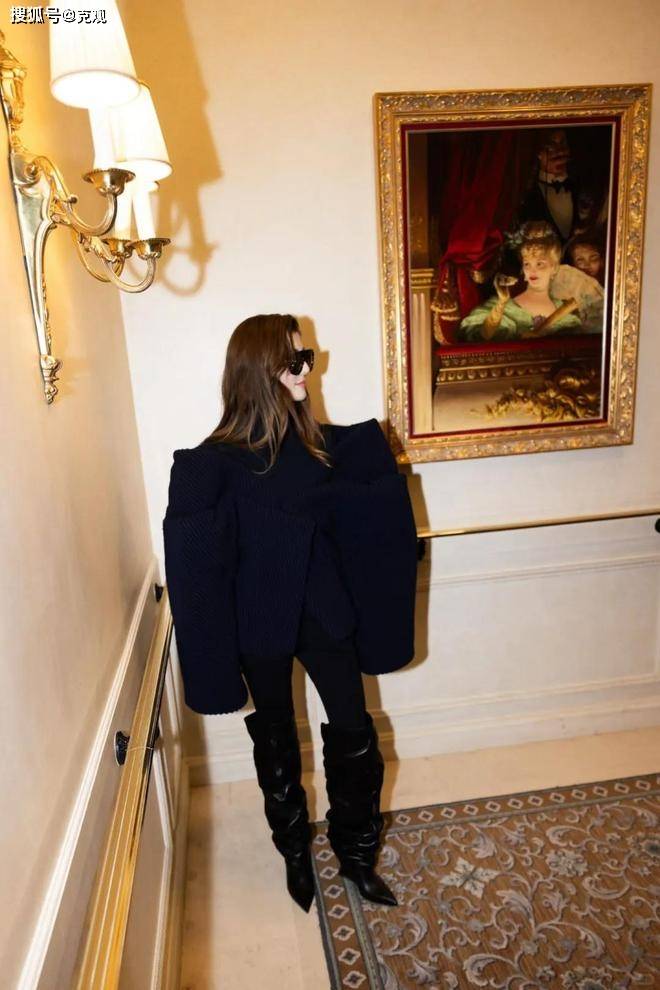 一整身all black造型就像是归回而来的千金大小姐,美的令人窒息!