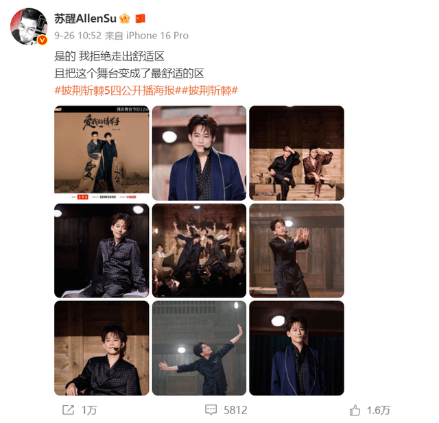 这样的情况出现后,苏醒选择和张智霖合唱《爱我的请举手》,这首歌曲依旧走的是唱演路线,只不过变得非常有创意,节目开播前,苏醒发出消息表示:是的,我拒绝走出舒适区,且把这个舞台变成最舒适的区。