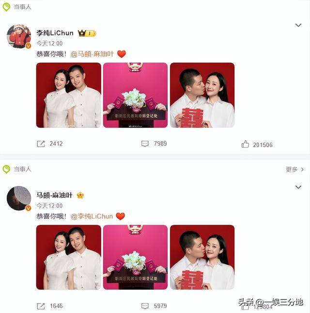 但今天马頔和李纯领证,五哈团却集体沉默了,没有一个人送祝福。