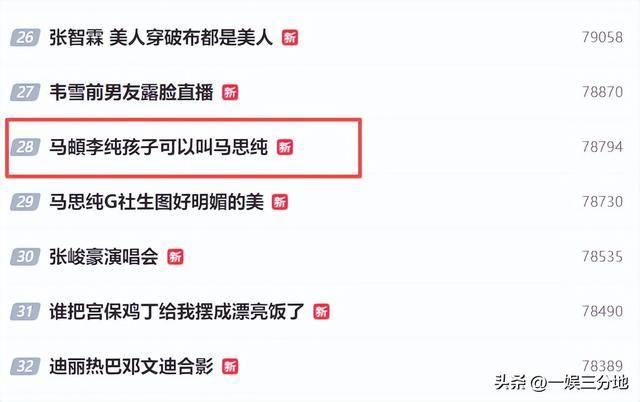 还连带着马思纯一起上了个热搜:马頔李纯的孩子可以叫马思纯。