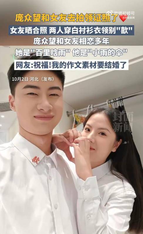 庞众望与女友领证照曝光,网友:我的作文素材要结婚了