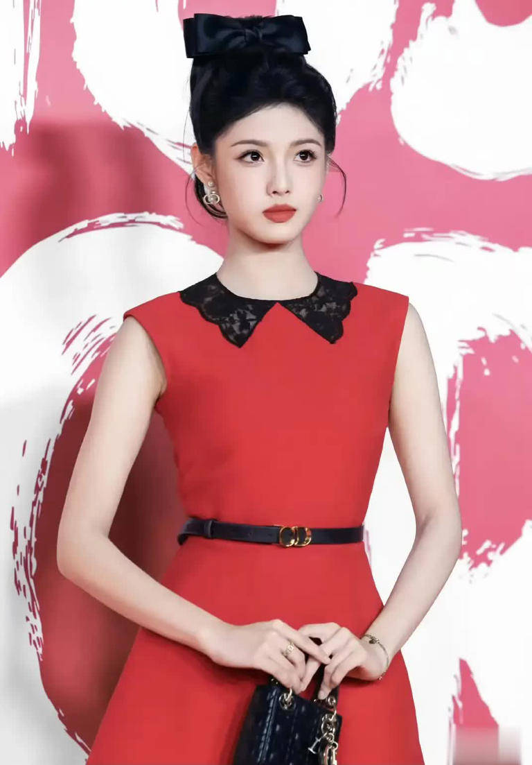 在那个星光璀璨的夜晚,上海的夜空被一抹鲜红点亮。17岁的新生代演员艾米,踏着轻盈的步伐走上迪奥之夜的红毯,全场的焦点瞬间被吸引。那一袭鲜红色连衣裙宛如一束盛开的玫瑰,在冷色调礼服的海洋中肆意绽放,仿佛宣告着青春的热烈与勇气。搭配高马尾和黑色蝴蝶结发饰,艾米的造型既俏皮又优雅,瞬间成为了全场最亮眼的存在。网友的评论如潮水般涌来,“喜庆热烈,像过年提前来了”,这一刻,她不是演员,而是青春的化身。