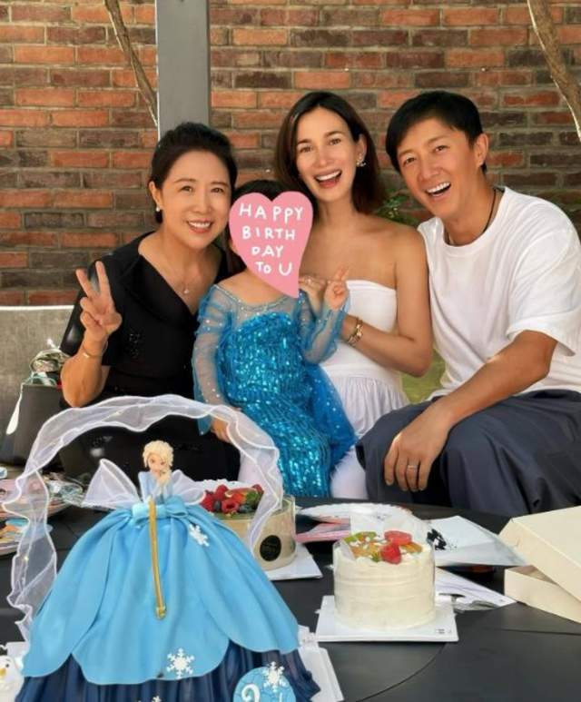 22年9月顺产生下女儿的卢靖姗,前几日一家人才为女儿庆祝完3岁生日,晒出的现场照中,小公主身着蓝色连衣裙,虽说脸部被挡住,但不难看出小公主皮肤白净,身形细长,从爸爸妈妈的颜值来看,她肯定是很漂亮的。