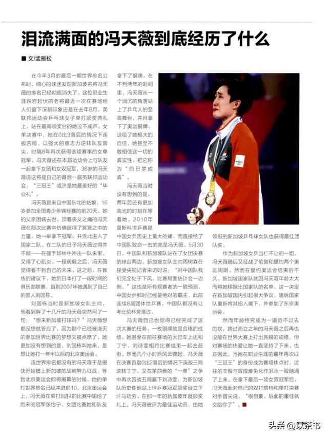 更讽刺的是,2016年底乒协又发联合声明:冯天薇作为公民,可继续代表新加坡打巡回赛,甚至“在特殊条款下,仍算国家队一员”。