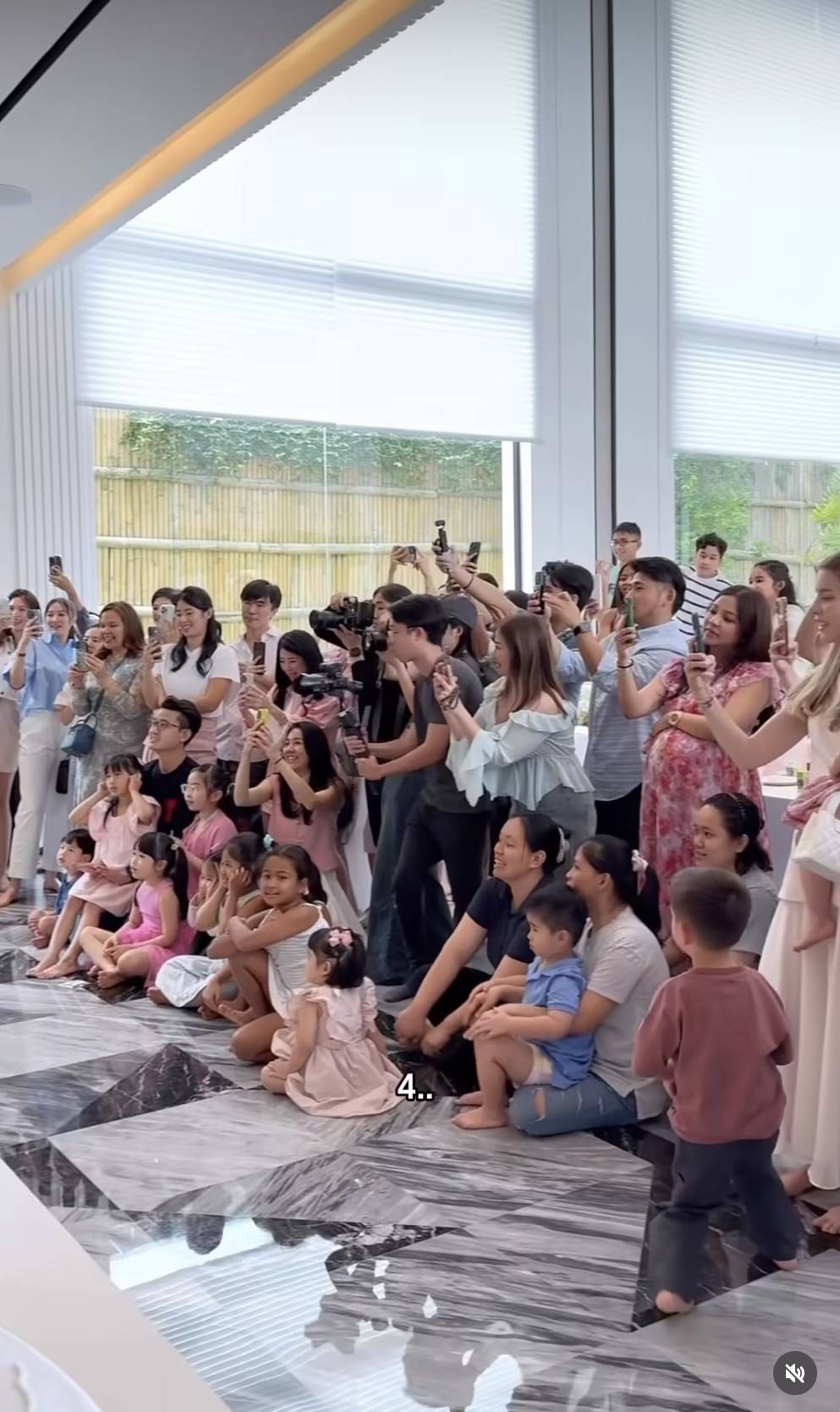 陈雪铃前两次也是在吉隆坡的豪宅举办迎婴派对,这一次也不例外。将她的住宅称之为豪宅并不夸张,豪宅的大厅天顶很高,至少在两米以上,所以显得气派,地板铺上了透亮的大理石,重点是空间感十足,容纳了数十人也不见拥挤,壮观得犹如酒店大堂。现场布置得十分奢华,犹如童话世界一般,有各种卡通的装饰物还有气球,在一个巨大的背景板(装饰物)前还有一个小型的主持台。主场景有三个很大的金色气球,气球上面写着“He or She”,实际上气球里面藏着小气球,如果是男孩就是蓝色,如果是女孩就是粉色。而为了隆重其事,现场还的亲友还各成一派,一派猜女生,一派猜男生,相当热闹。