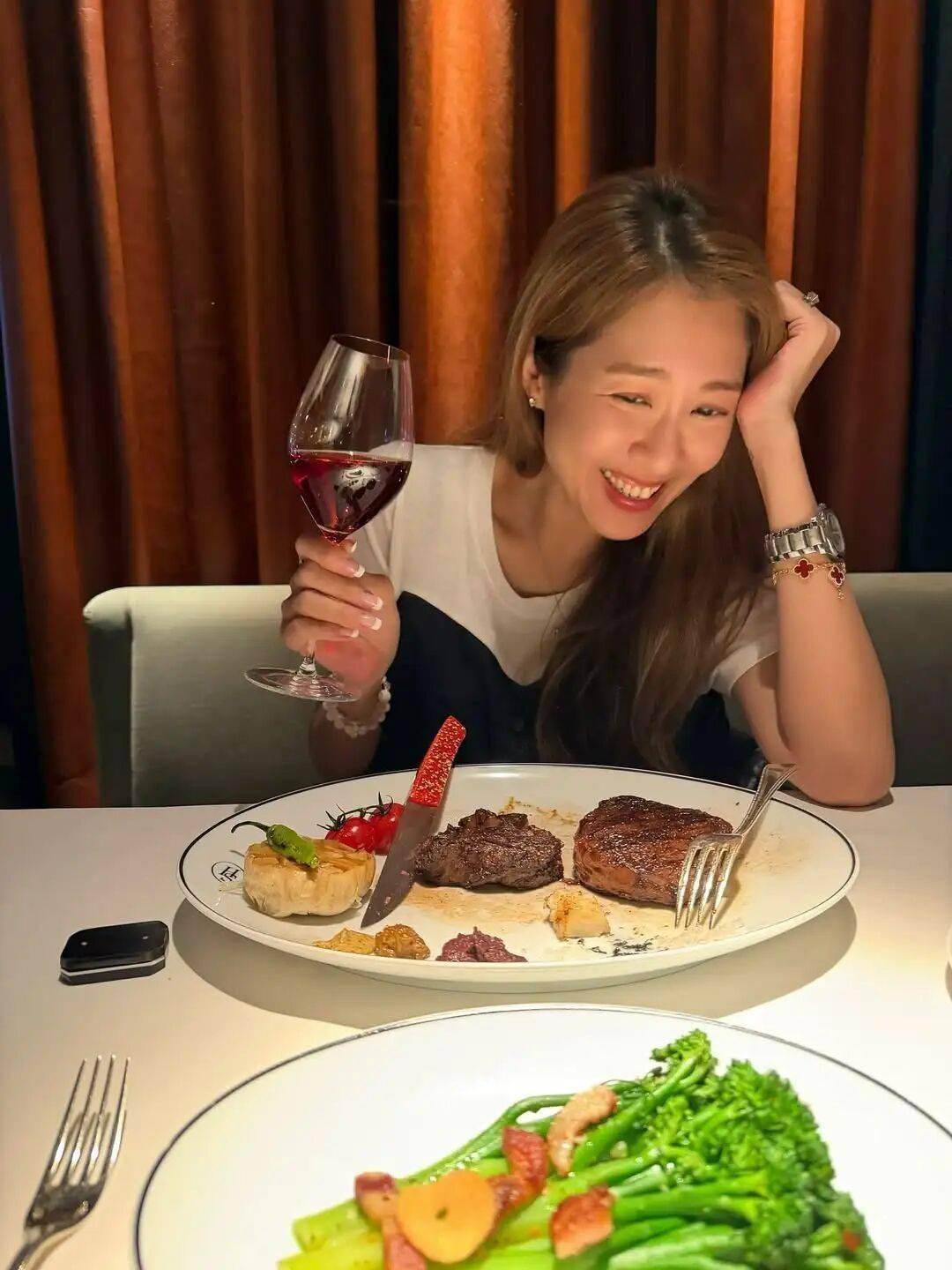 46岁TVB索腿天后陈敏之近年很少拍剧,即使有戏份也没有之前的多了,今年是她结婚11周年的钢婚,陈敏之与老公雷伟信到餐厅烛光晚餐,只见陈敏之双手戴着名表,左手婚戒又闪又大!