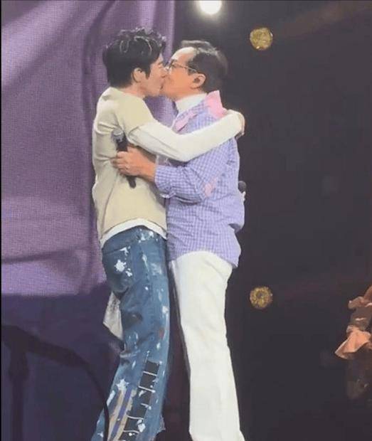 事实上,这并非他们第一次在公开场合嘴对嘴亲吻。两人曾在 2009 年的一场活动中,以及 2012 年香港演唱会、2018 年上海演唱会上,都有过同样亲密的举动,这一行为似乎已成为他们合作演唱会的固定环节。