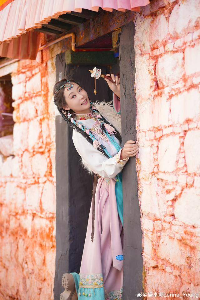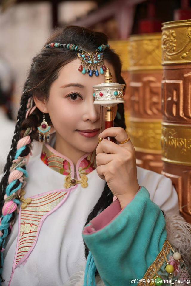 走在西藏的街头,用杨卓娜的话说,真的每一步都是在修行,穿起藏服的杨卓娜明显有种少数民族的气质,四十八岁的她状态相当好,皮肤细腻有光泽,脸型修长,五官和刚出道时相比也是更加有立体感。