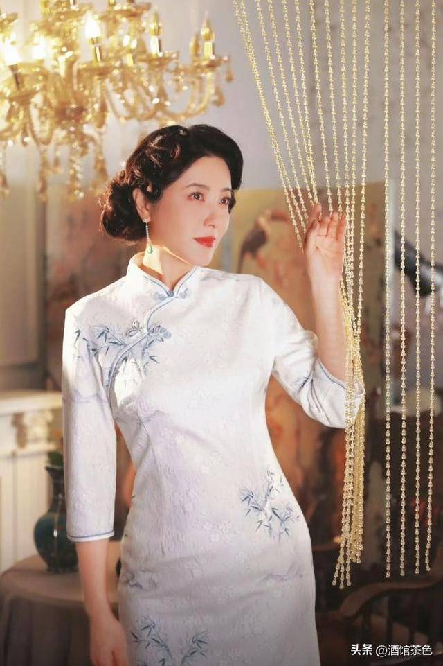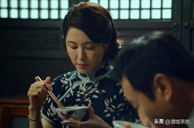 从她的穿衣打扮来看,她的旗袍每次都是那种暗色的墨绿织锦旗袍,缠枝莲的花纹在灯光下才能显得出来,这很符合她这个人物的性格,她有自己的小秘密。