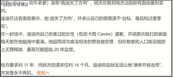 据悉,吹牛老爹的律师请求仅判14个月,因为监狱的生活已经让他“谦卑并被击垮”,并发誓永不再犯。吹牛老爹本人也表示自己当初是“迷失了方向”,还在信件中向自己伤害过的女性道歉,其中也包括其前女友卡西。