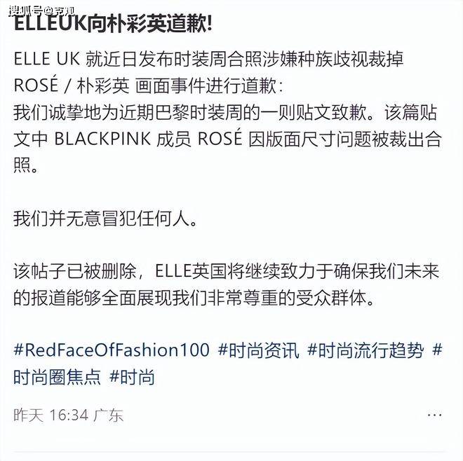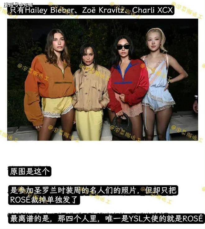 更离谱的是,这4人中只有朴彩英才是真正的圣罗兰大使,这种想吃亚洲人的饭,又要砸亚洲人的碗的行为,已经不再是朴彩英的粉丝不满,许多路人也加入声讨行列。对此,ELLEUK道歉了,表示并无意冒犯任何人,是因为版面问题才裁掉合照。如今这则合影也被删除了,品牌方单独删除了朴彩英的单人照片。