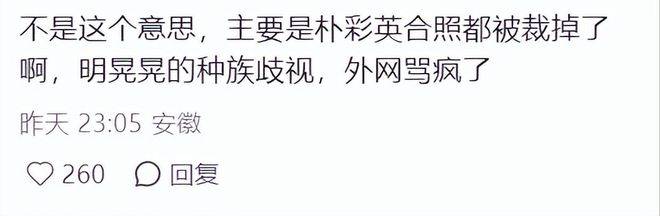 elleuk晒出的一张合影中,只有国外3位女明星的,而原图中朴彩英是站在红衣女子旁边的,很显然是被品牌方裁掉了。对此,粉丝质疑品牌方在搞种族歧视,故意把合影中唯一一位亚裔成员朴彩英裁掉。