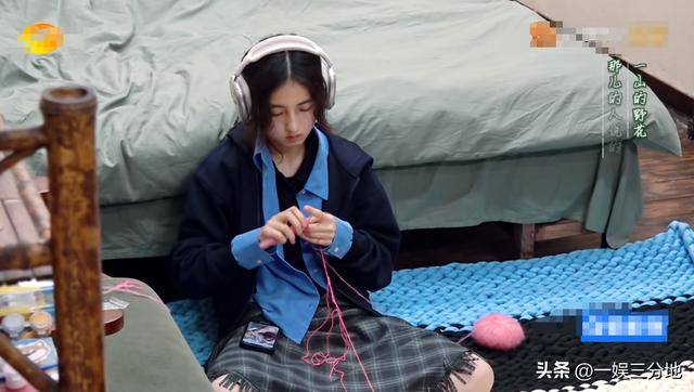 这时,不得不说,戴着耳机、不说话、在钩织毛线梅花的张子枫,更有看点些。