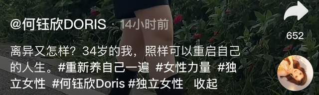 10月5号,何钰欣再度以“离异未育”女性作为话题,展开叙述自己“离婚”后的生活。