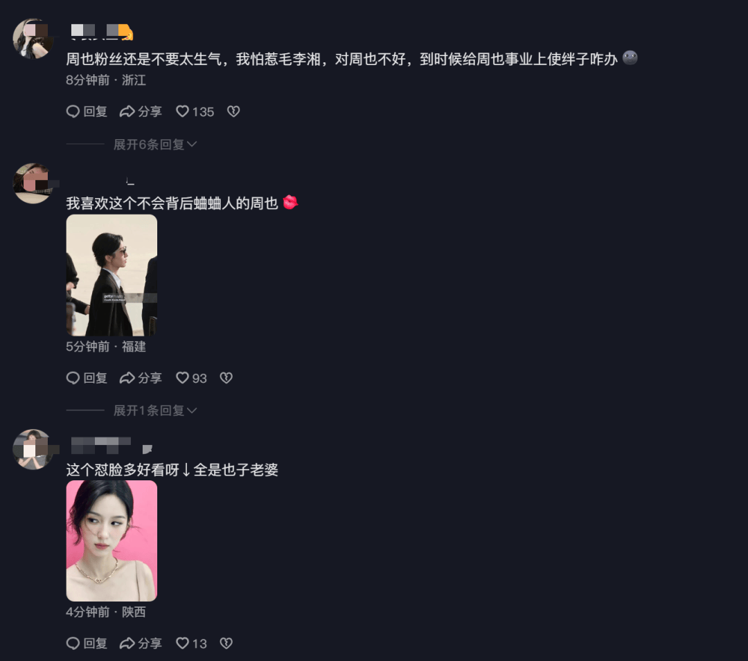 看到王诗龄评论区沦陷,部分网友认为周也粉丝无理取闹了,不应该攻击未成年的王诗龄,应该把矛头对准李湘,毕竟照片是李湘拍摄发布的,身为公众人物她应该有舆论风险防范意识。而且,李湘也该承担这个责任,至于王诗龄有权利喜欢或讨厌任何人,她本人也不知道随口一句话被曝光公开,在这场舆论中很无辜。