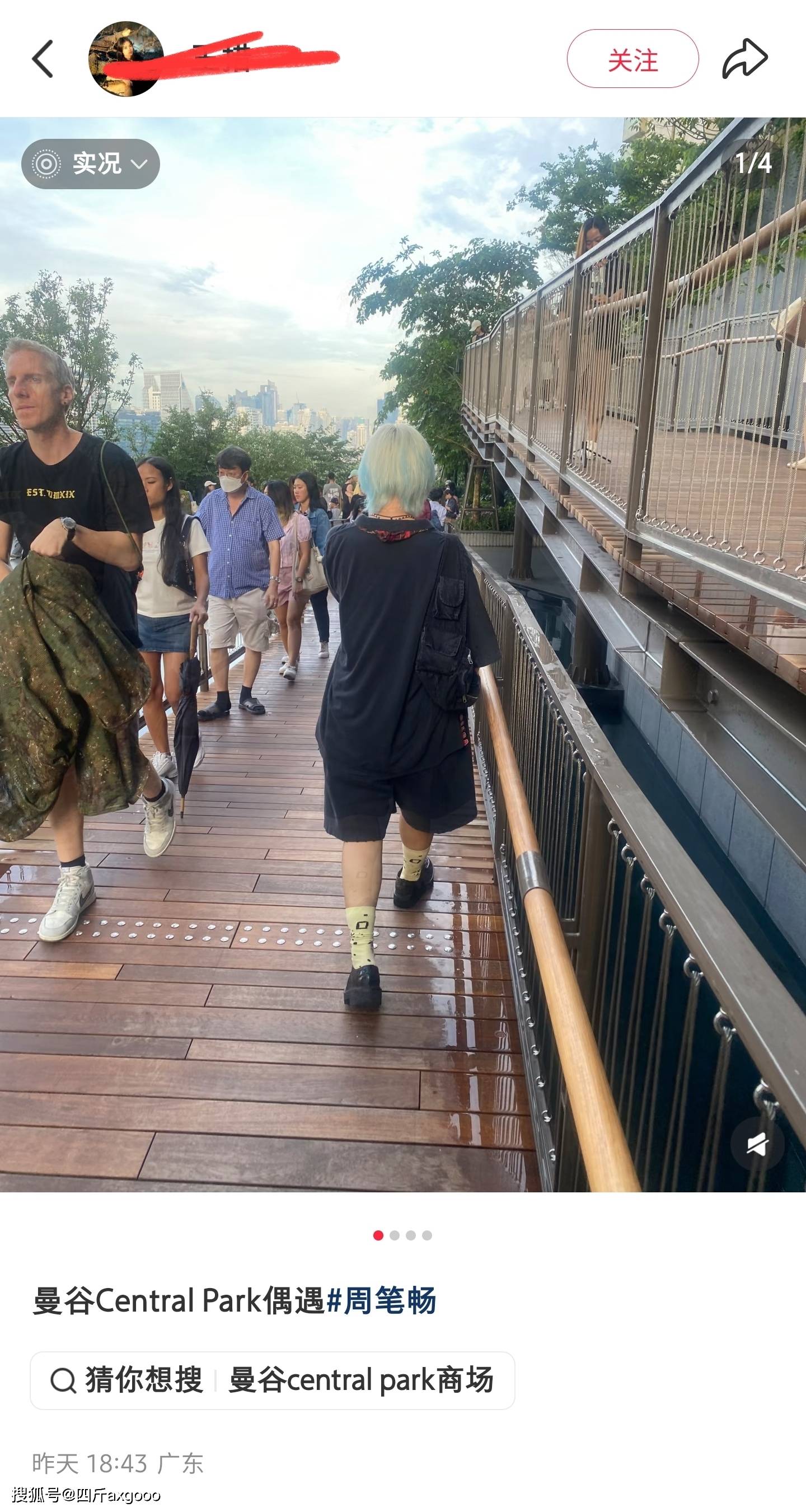 牛仔裤,小外套,戴个小墨镜,完全融入了人群之中。