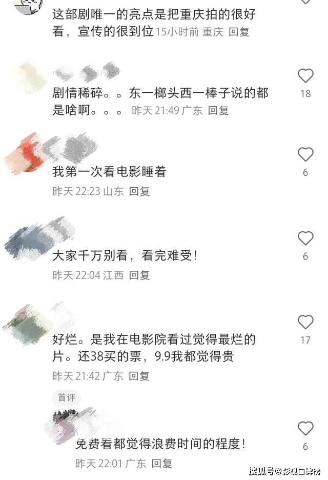 但这份好感,很快就被乱成一锅粥的剧情冲得七零八落。网友的一些辣评甚至比影片内刻意搞笑的台词搞笑:像我太奶说梦话,梦到哪句说哪句;我爸说找到了小时候在农村看着电影睡觉的感觉……所以大家究竟在吐槽什么呢?