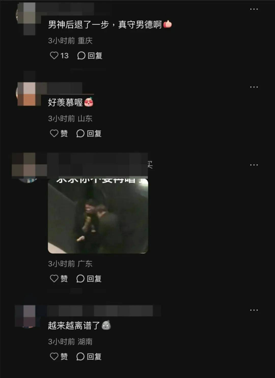 这个举动在网上引发热议,一众网民除了羡慕博主能亲近偶像外,也大赞陈奕迅的绅士风度:「我也注意到了,男德好评!」、「男神后退了一步,真守男德啊!」; 同时也有网民幽默地向博主留言:「你快躺他怀里了!」让博主赶紧澄清:「发誓我不是故意的!」、「是我冒昧了,光顾着自拍了没管他死活」,令人哭笑不得。 但这个意外的小插曲,也再次突显陈奕迅的爱妻形象。