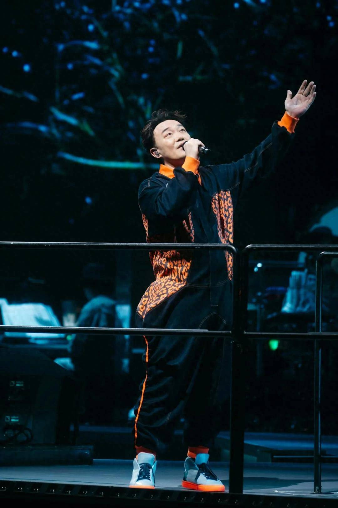 陈奕迅巧妙地向后退了一小步,身体微微倾斜。