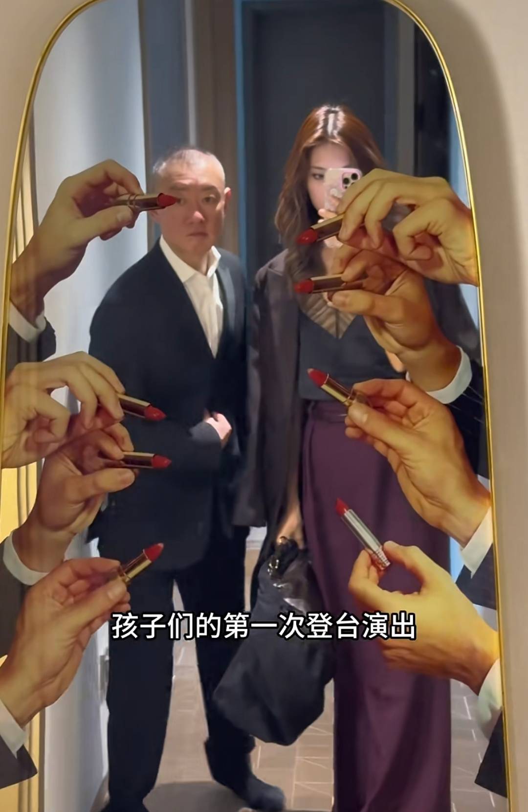 画面中,48岁的汪雨穿着黑色西装,打扮格外正式,新婚妻子崔璨也身着时尚服饰,两人正准备前往观看女儿的大提琴表演。