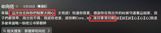 今年5月份,向佐回了台北和郭碧婷及孩子团队,离开时还表示万分不舍。向佐还晒出和郭碧婷的合影,居然是两年前的艺术照。