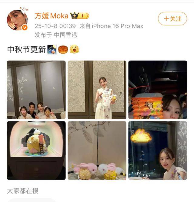 10月8日,方媛更新了过中秋的照片。虽然中秋已经过去了,方媛刚刚晒出照片,可能是要修图,选照片,现在刚刚结束,才跟粉丝们分享。
